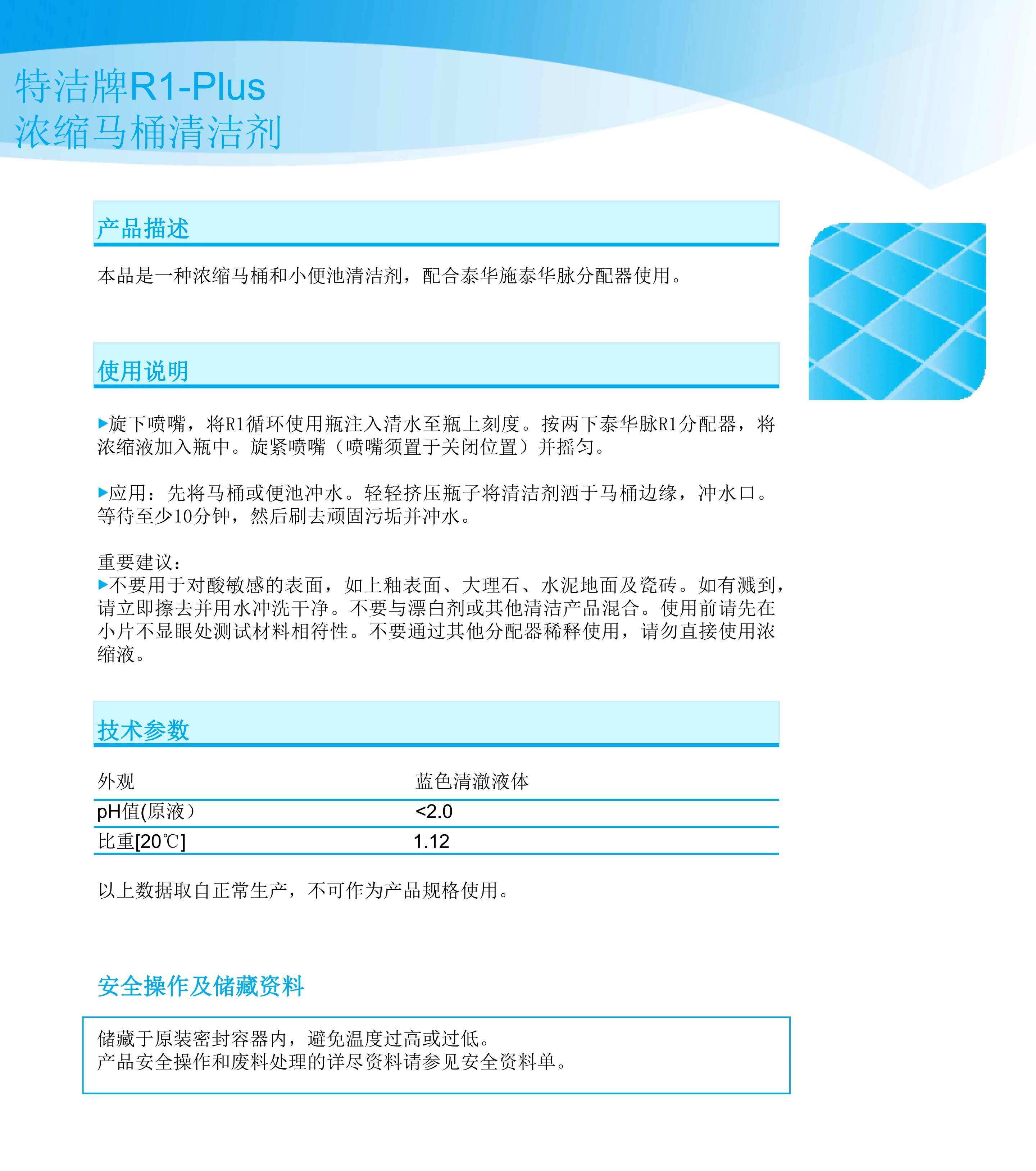 特洁牌R1-Plus浓缩马桶清洁剂 泰华施 HH820124